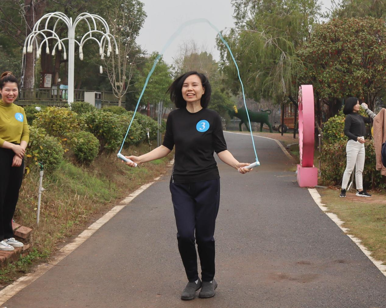 本次活動(dòng)共設(shè)跳繩、顛氣排球和搶凳子三個(gè)游戲項(xiàng)目,參賽人員分為八組進(jìn)行比拼。比賽場(chǎng)上,眾位“女神”各展身手,配合默契,“男神”們則作為幫幫團(tuán)參與比賽,現(xiàn)場(chǎng)熱烈的歡呼聲和加油助威聲此起彼伏,洋溢著歡快的節(jié)日氣氛。